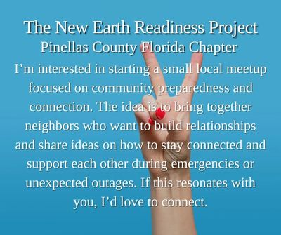 The New Earth Community Care Project is a local membership community dedicated to strengthening real-world relationships, practical preparedness, and mutual support. Our intention is simple: to create a calm, caring network of neighbors who are connected, informed, and ready to support one another during emergencies or unexpected disruptions.